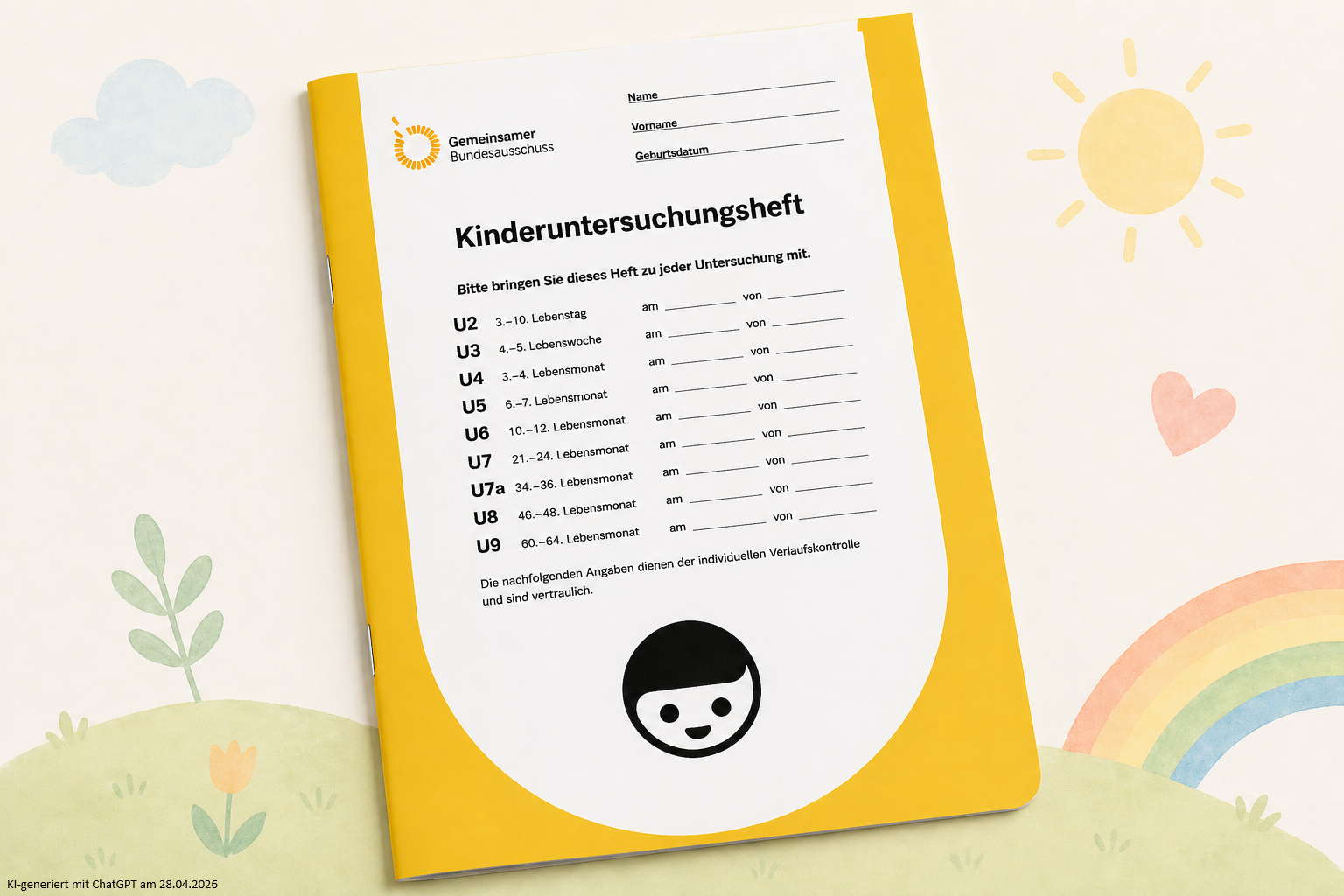 Sie haben sicher das gelbe "U-Heft" für Ihr Kind. Hier dokumentiert der Kinderarzt/die Kinderärztin die Ergebnisse der Vorsorgeuntersuchungen für Ihr Kind ein. Sie können 10 Vorsorgeuntersuchungen (U-Untersuchungen) wahrnehmen. Bei dieser Früherkennung schaut der Kinderarzt/die Kinderärztin, ob die Entwicklung Ihres Kindes gut voran geht. Ob zum Beispiel die Bewegungen des Kindes gut entwickelt sind oder ob die geistigen Fähigkeiten dem Alter entsprechend entwickelt sind. So können frühzeitige Hilfen, Therapien oder spezielle Untersuchungen angeboten werden.