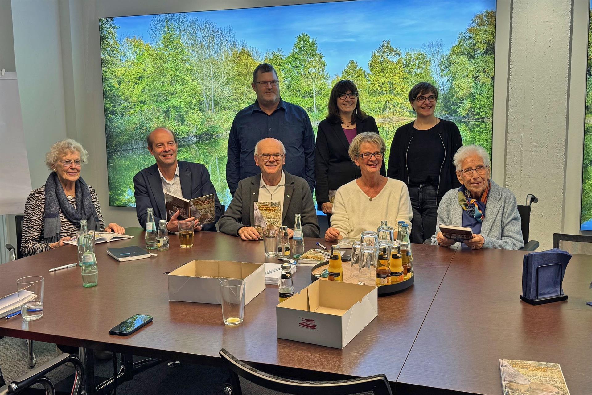 Foto: Präsentieren den aktuellen Rheinisch-Bergischen Kalender: Autorin Hildegard Jurtzig, Verleger Hans-Martin Heider, Friedhelm Weiß, stellvertretender Landrat, Chefredakteurin Karin Grunewald, Autorin Marie-Luise Mettlach (vorne, v.l.n.r.), Autor Dr. Alexander Kierdorf, Autorin Ute Glaser und Kreiskulturreferentin Anna Bründl (hinten v.l.n.r.)
