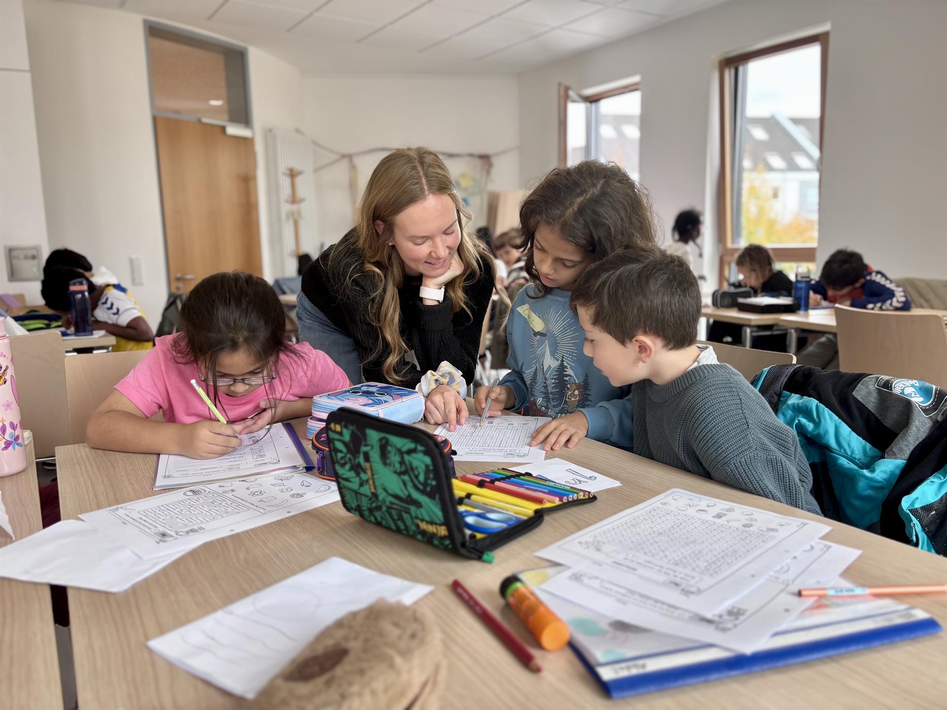 FIT_1: Im Bergisch Gladbacher Hermann-Löns-Forum verbesserten Kinder aus drei Grundschulen mit ihren Sprachlernbegleiterinnen ihre Deutschkenntnisse.